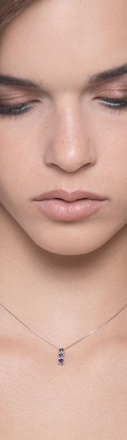 Collier or blanc 18k avec pendentif trilogy saphirs et diamants