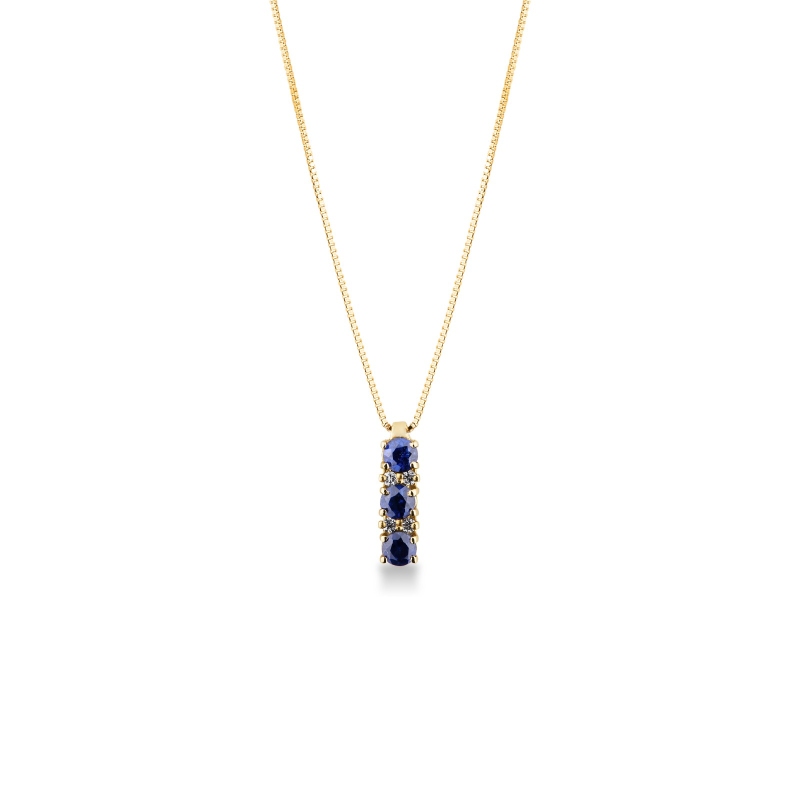Collier or jaune 18k avec pendentif trilogy saphirs et diamant