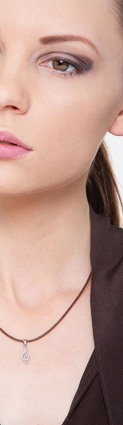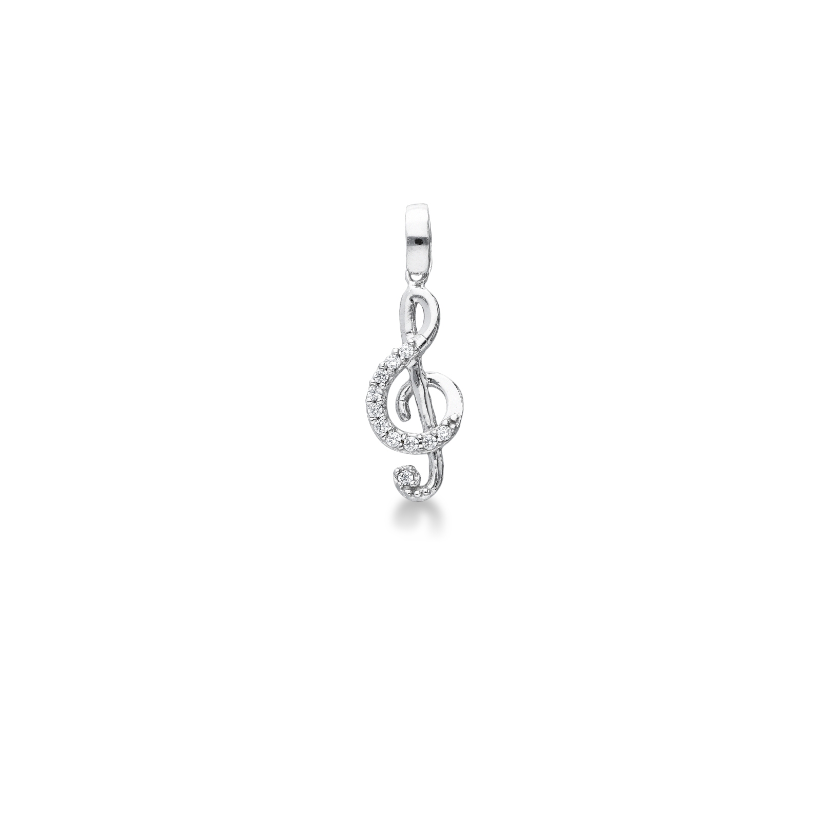 Pendentif Clé de Sol en Or Blanc 18K avec Zircons
