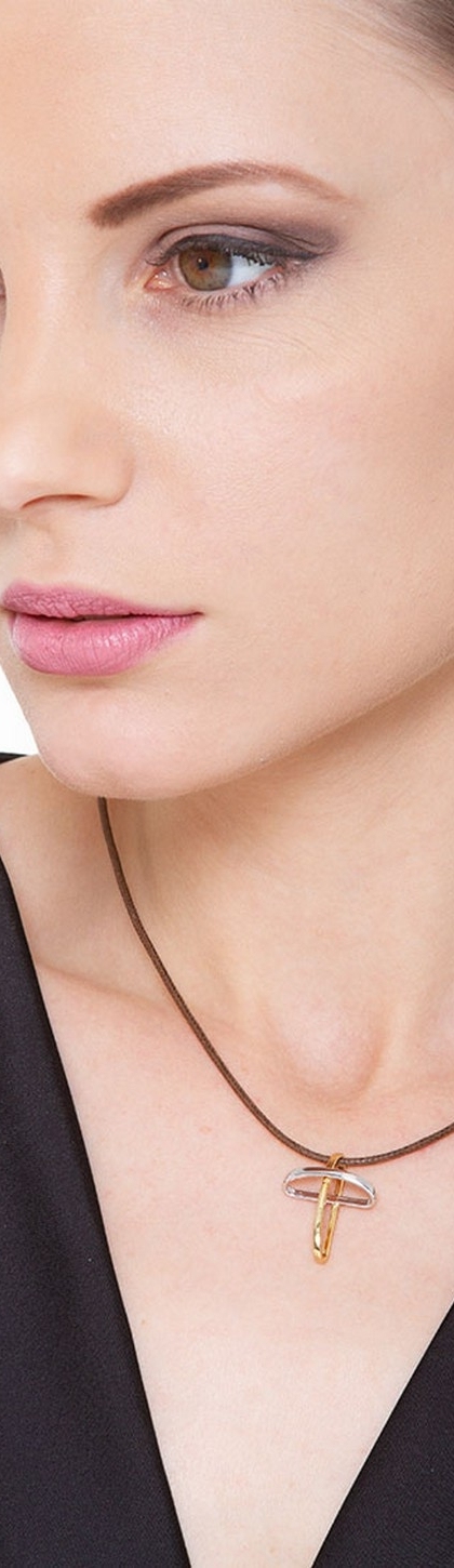Sobre et elegant, ce pendentif en forme de croix associe l’or blanc et jaune 18 carats. D’une hauteur d’environ 2,5 cm, il incarne un symbole intemporel avec une touche de modernite.