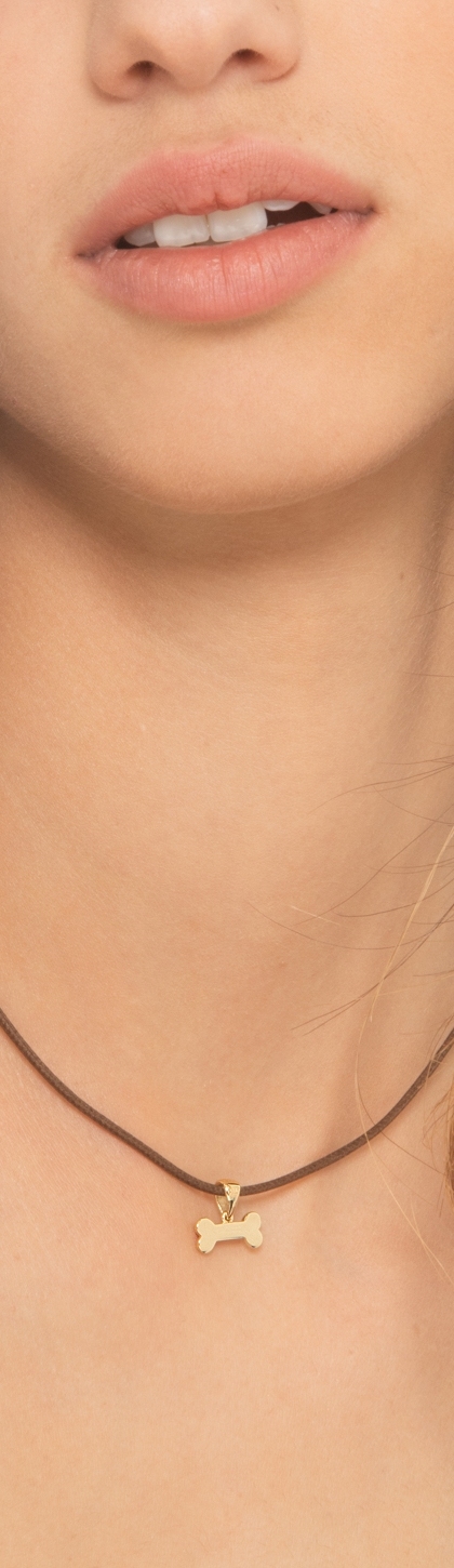 Élégant pendentif en or jaune 18k en forme d'os de 0,50 x 1,20 cm personnalisable jusqu'à 8 lettres idéal pour offrir ou porter avec style