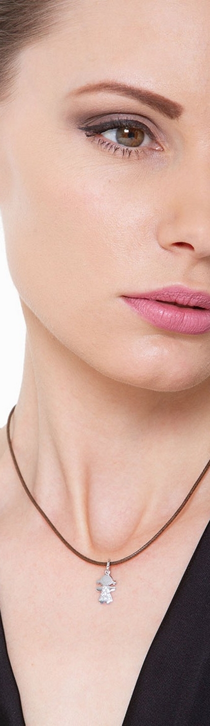 Pendentif fillette en or blanc 18k avec pavé de zircons