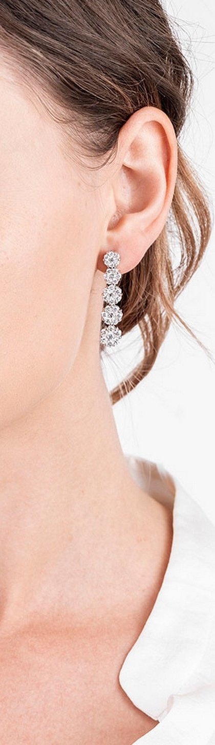 Boucles d'oreilles en or blanc 18k modèle illusion avec 5 fleurs