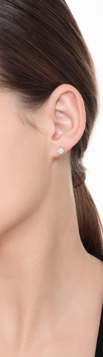 Boucles d'oreilles illusion en or blanc 18 carats avec diamants