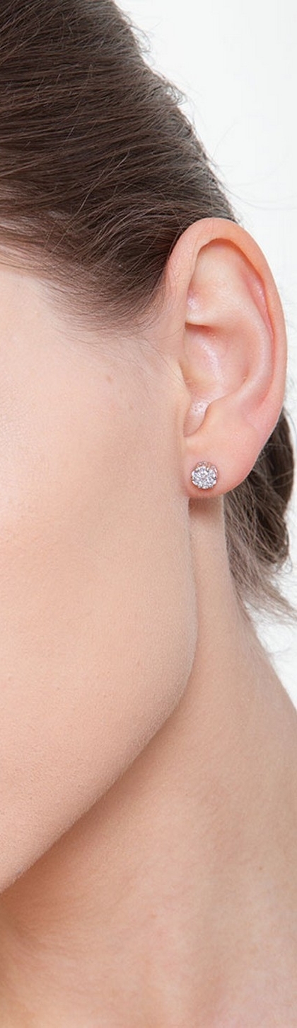 Boucles d'oreilles illusion en or blanc 18 carats avec diamants