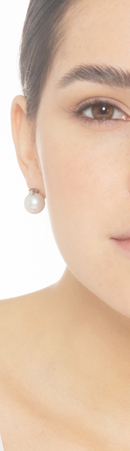 Boucles d’oreilles femme en or blanc 18k avec perles naturelles et diamants