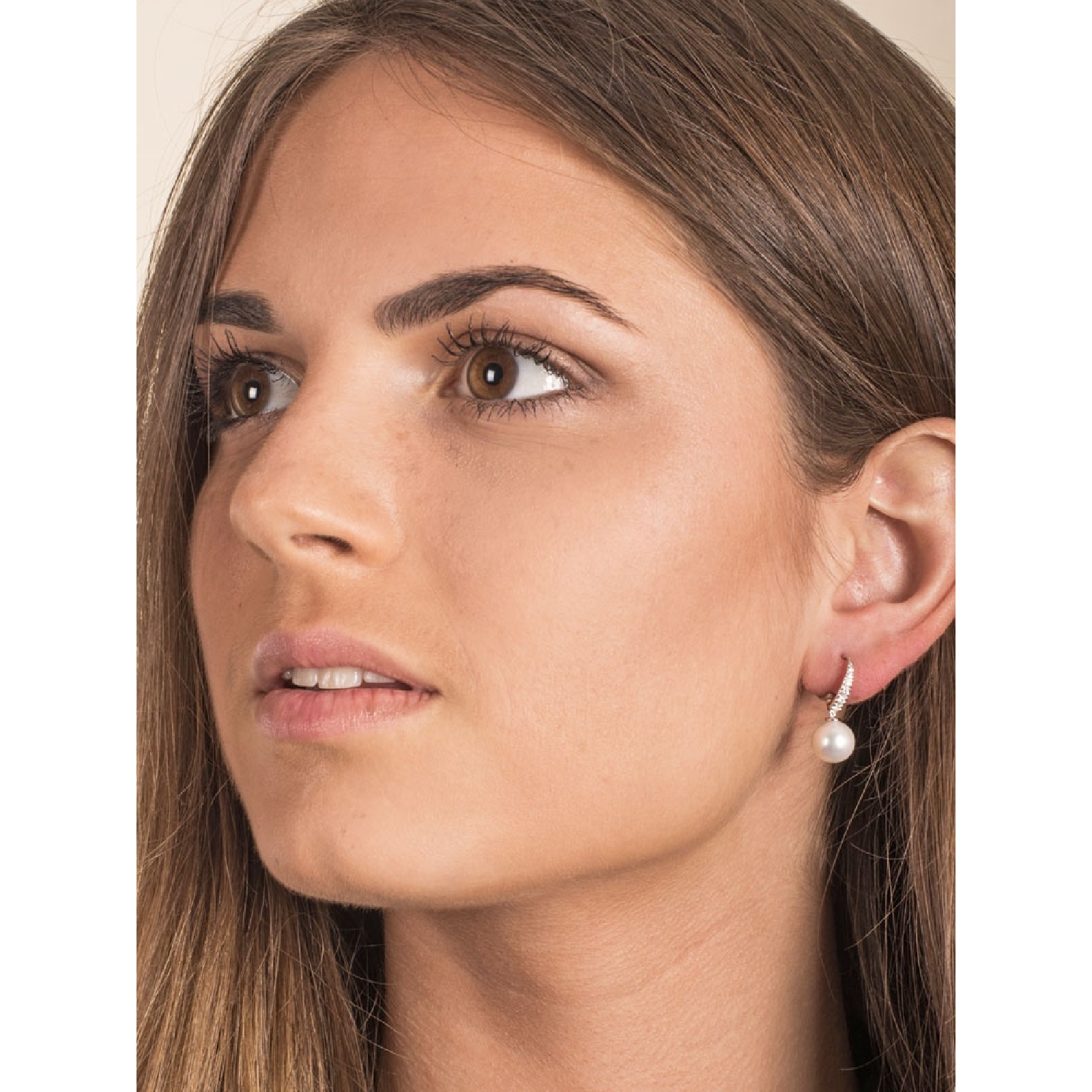 Boucles d’oreilles pendantes en or blanc 18k avec perles et diamants