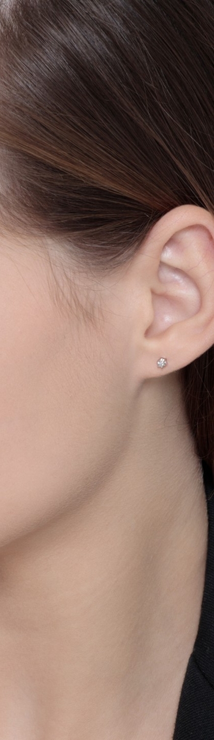 Boucles d'oreilles puce en or blanc 18k à 6 griffes avec diamants 0.08 ct