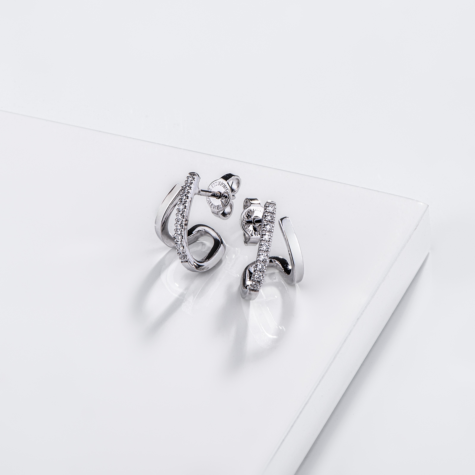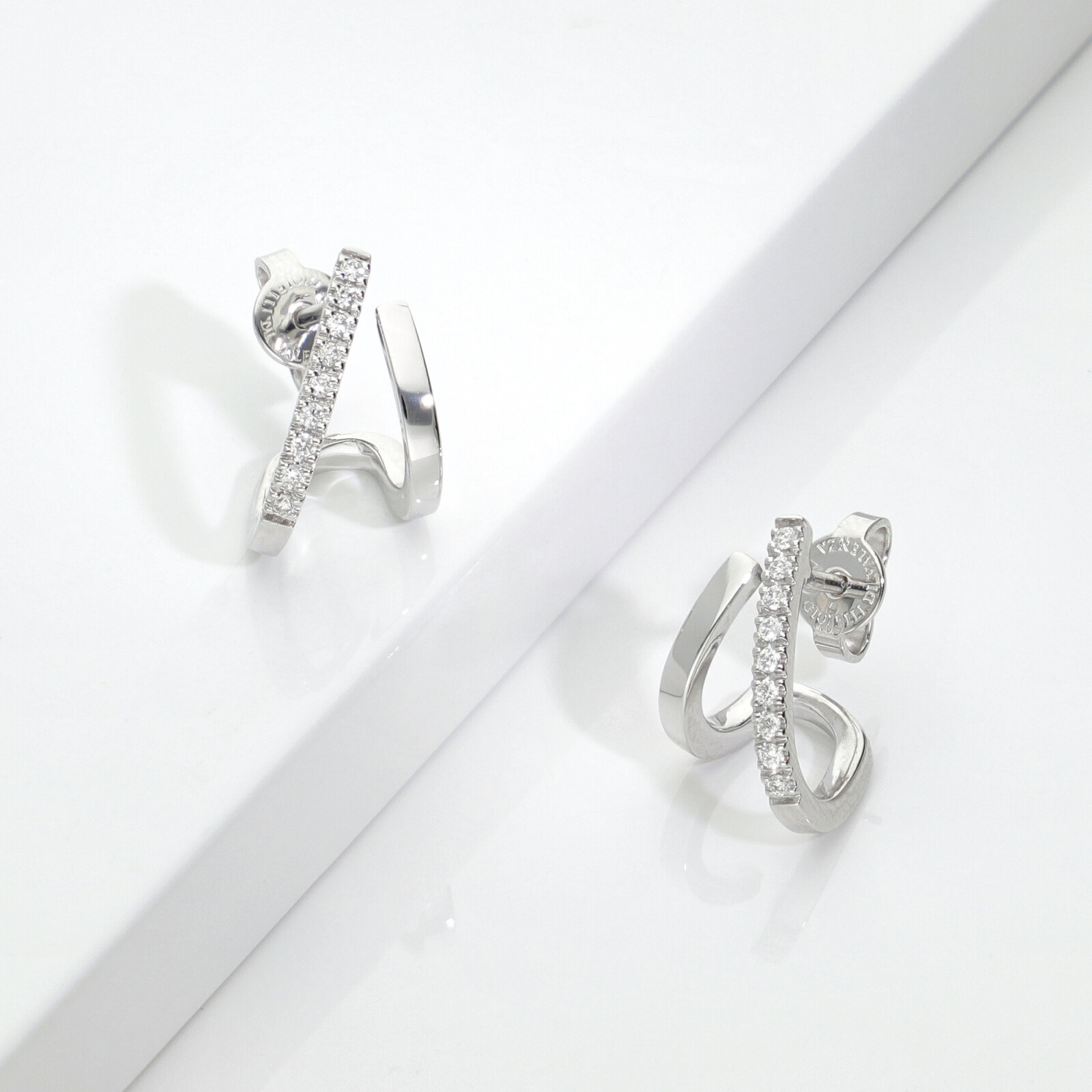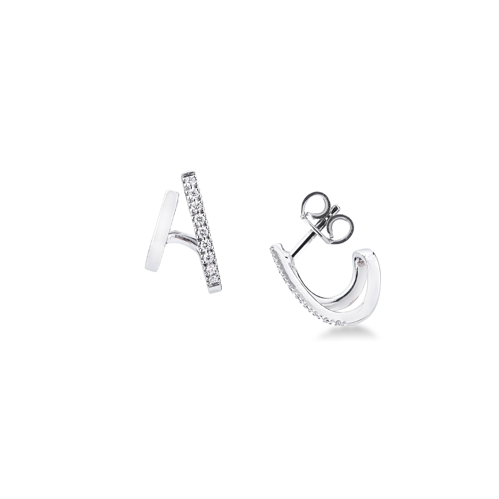 Boucles d’oreilles design en or blanc 18k avec rangée de diamants