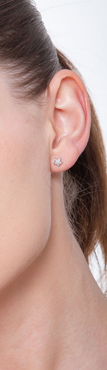 Boucles d'oreilles en forme d'étoile en or blanc 18k avec diamants