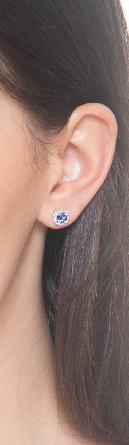 Boucles d'oreilles en or blanc 18 carats avec un saphir bleu