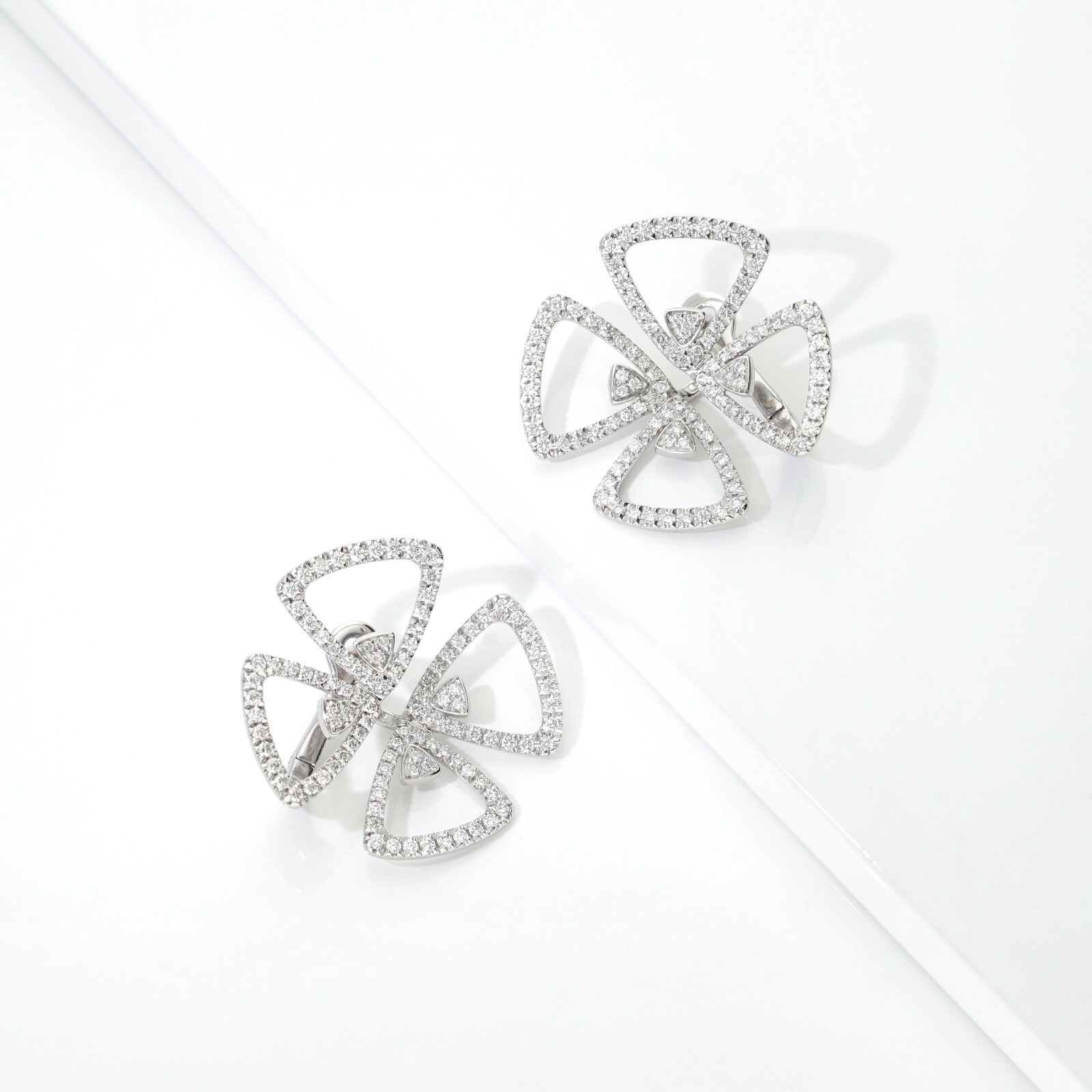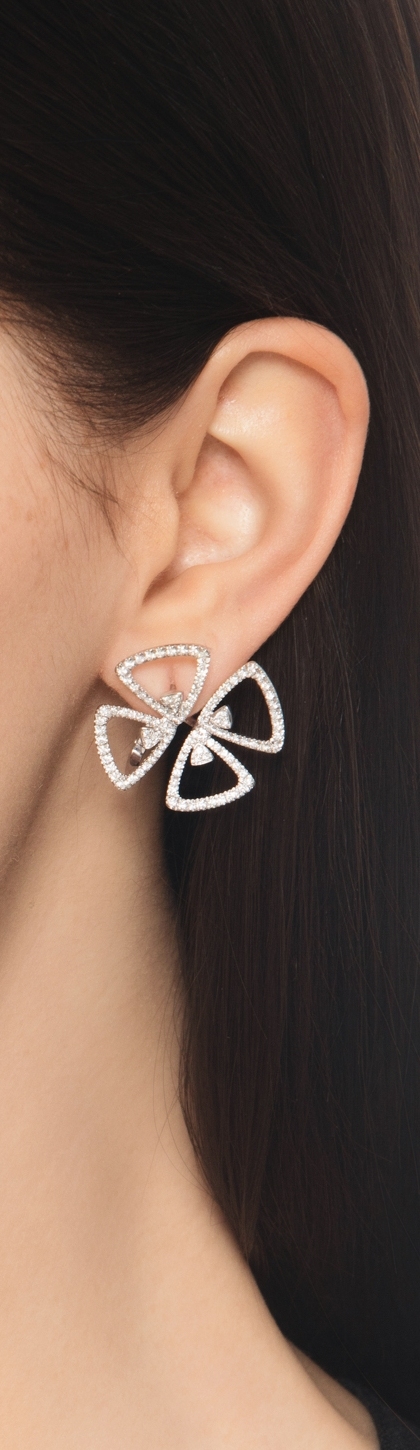 Boucles d’oreilles en or blanc 18k avec fleurs en diamants