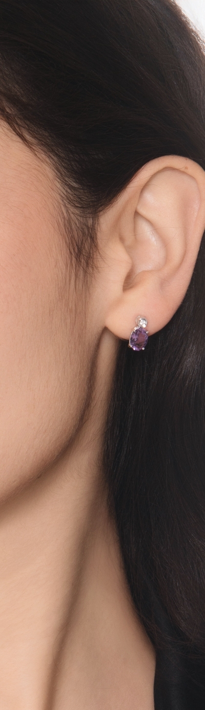 Boucles d’oreilles en or blanc avec améthyste ovale et diamant
