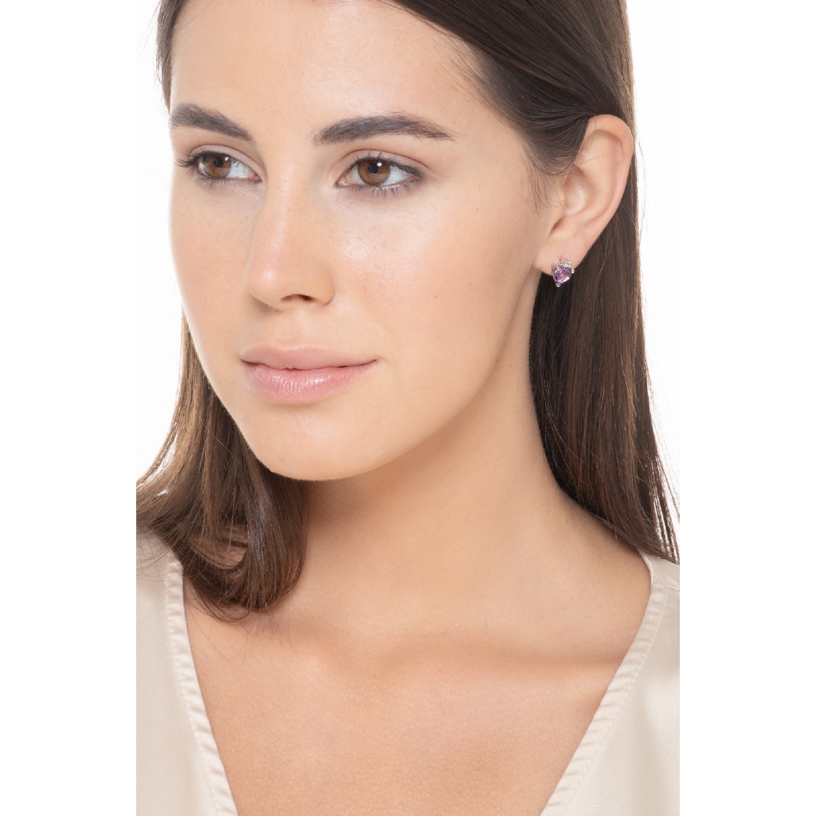 Boucles d’oreilles Or Blanc 18k avec améthyste cœur et diamants