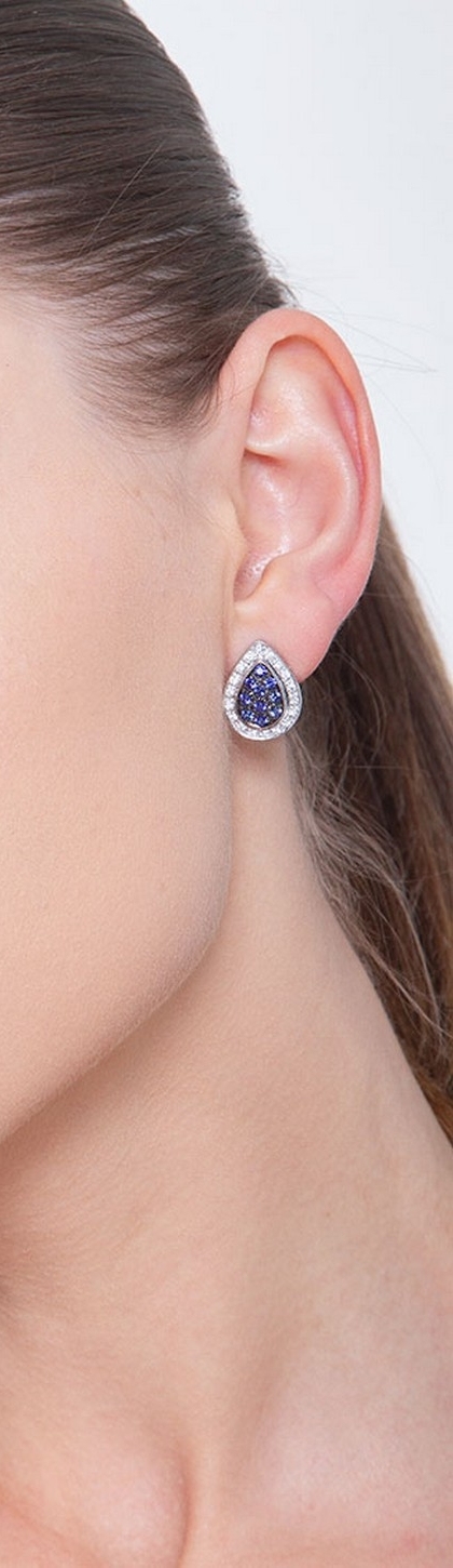 Boucles d’oreilles Or Blanc 18k goutte avec pavé de saphirs et diamants
