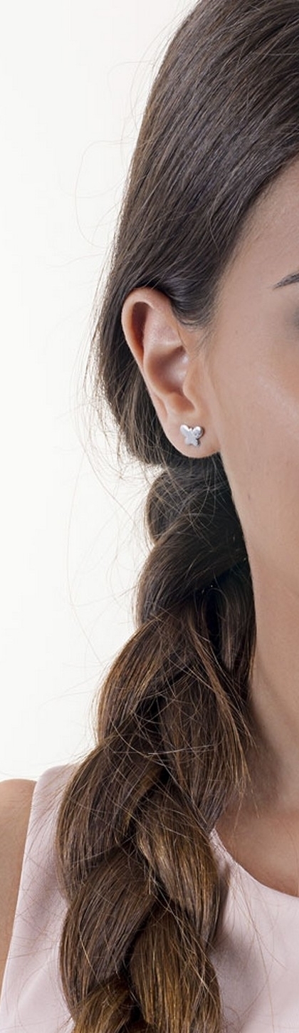 Boucles d'oreilles papillon en or blanc 18k avec trois zircons