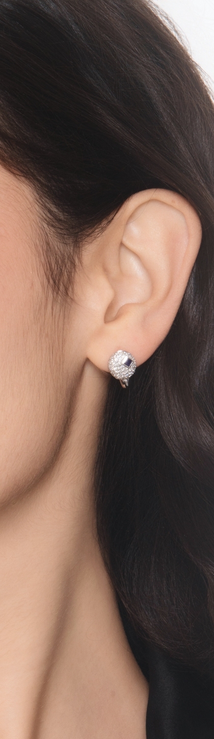 Boucles d’oreilles pavé ovale en or blanc, saphir et diamants