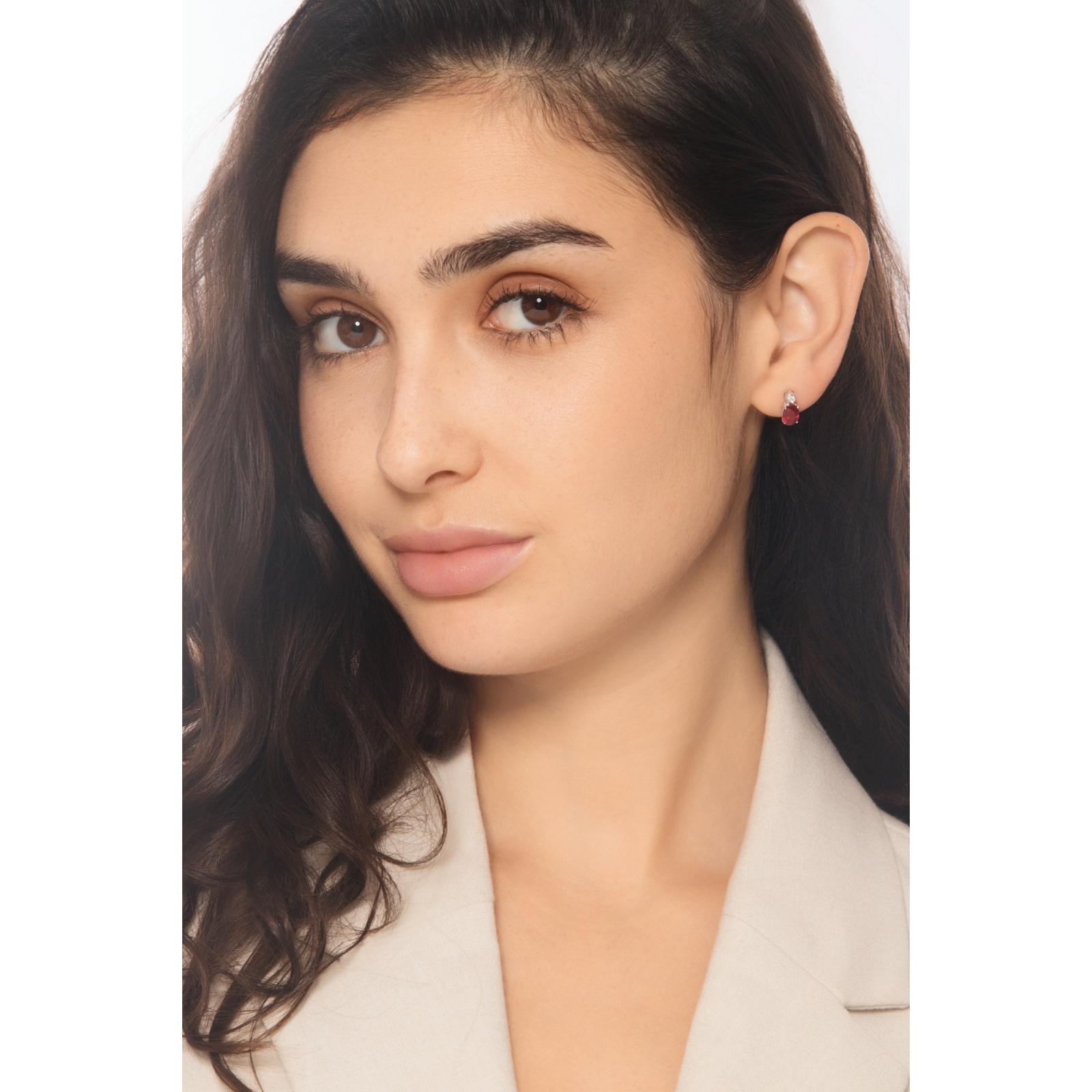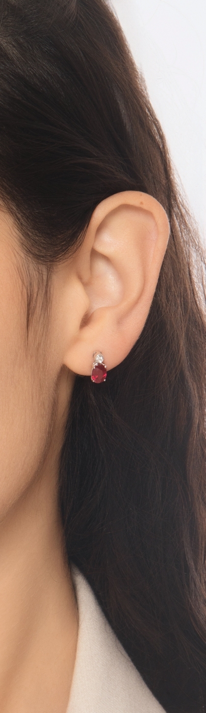 Boucles d’oreilles puces en or blanc 750 avec rubis ovales et diamants
