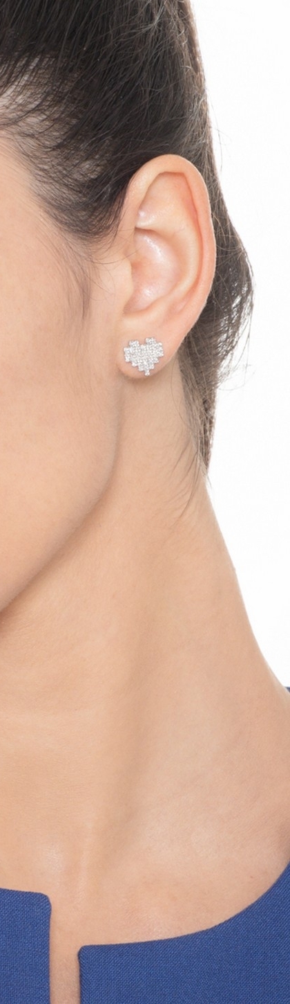 Boucles d’oreilles puces or blanc 18k cœur avec diamants