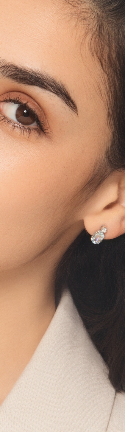 Puces en or blanc 18k avec aigue-marines avec diamant