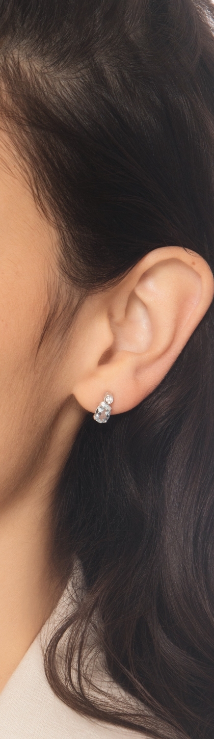 Puces en or blanc 18k avec aigue-marines ovales et diamants