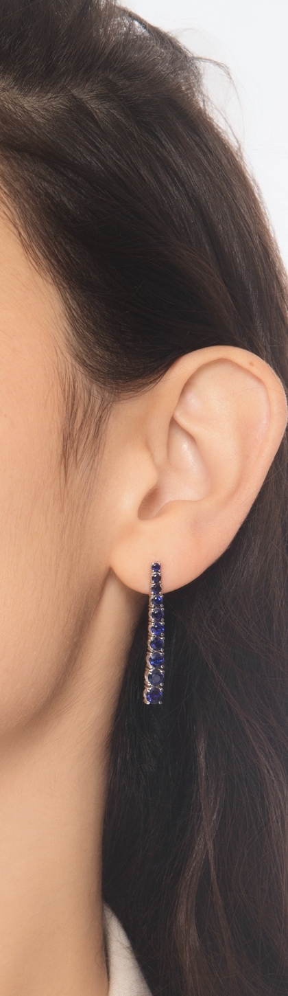 Boucles d’oreilles tennis à dégradé en or blanc 18k avec saphirs bleus
