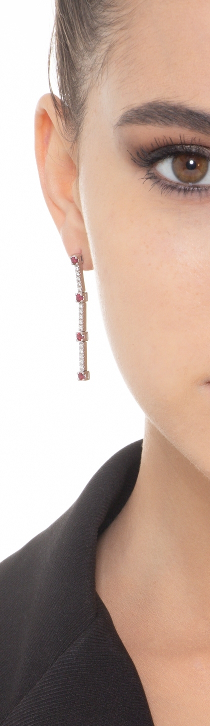 Boucles d'oreilles tennis en or blanc 18k avec des rubis et des diamants alternés