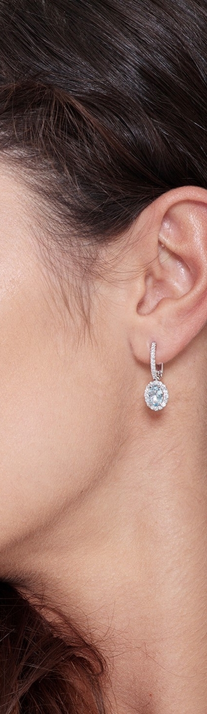 Boucles d’oreilles avec aigues-marines ovales et halo diamants Or Blanc 18k