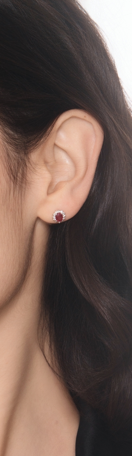 Boucles d’oreilles contournées en or blanc 18k avec rubis et diamants