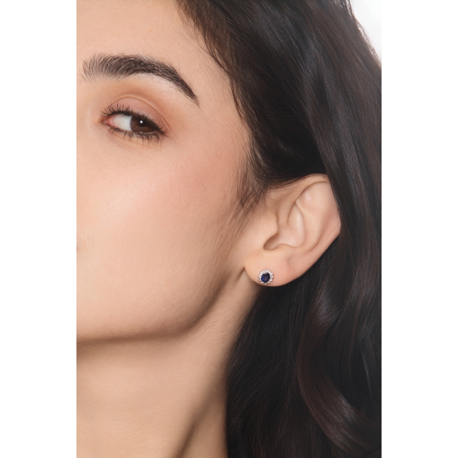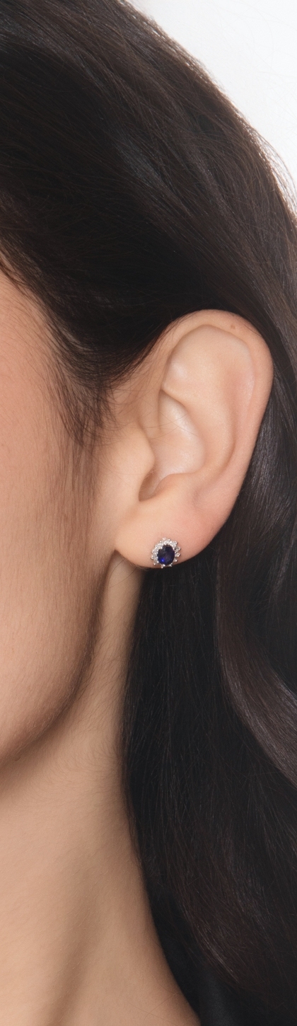 Boucles d’oreilles contournées en or blanc 18k avec saphir bleu et diamants