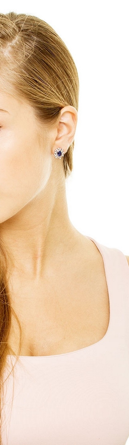Boucles d'oreilles en or blanc 18k saphir bleu et diamants
