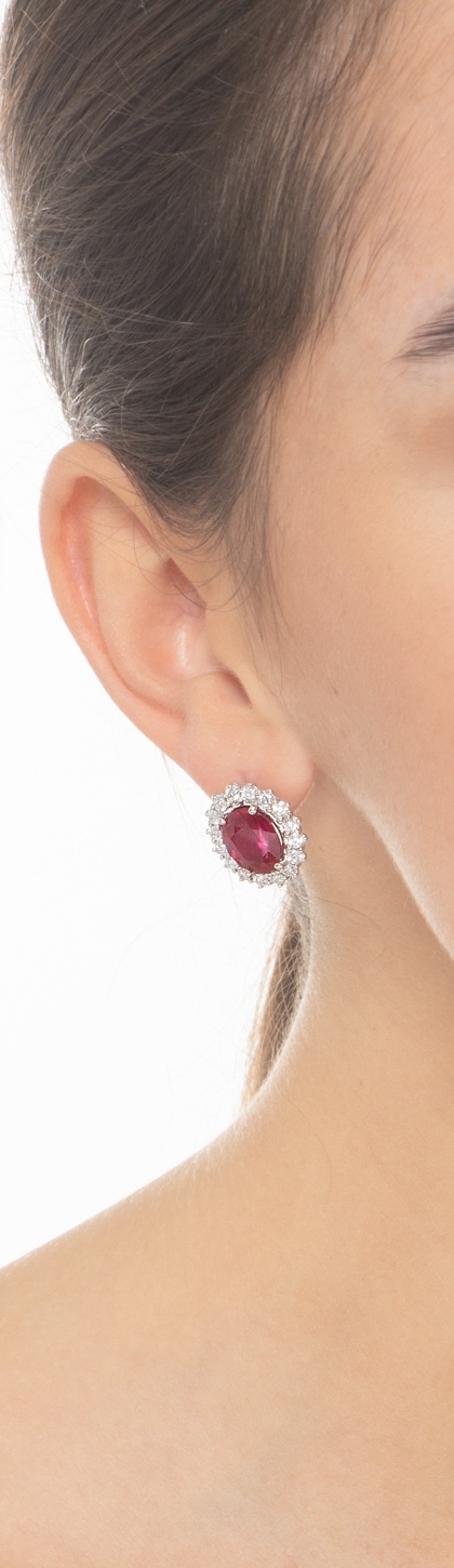 Boucles d'oreilles halo de diamants en or blanc 18k avec des rubis