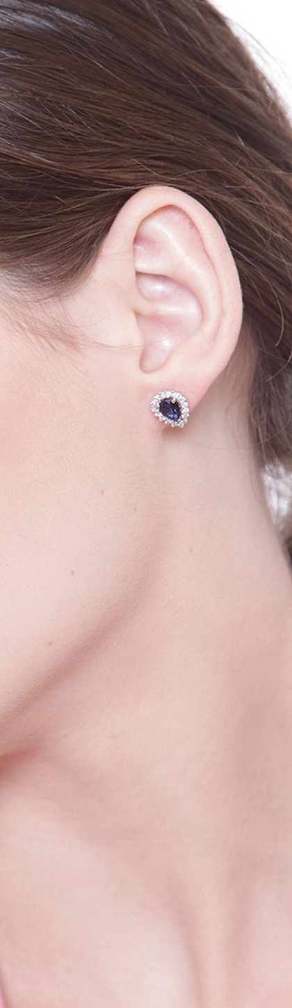 Boucles d’oreilles or blanc 18K saphirs goutte et diamants