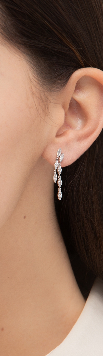 Boucles d'oreilles 2 pendantes en or blanc 18k avec diamants