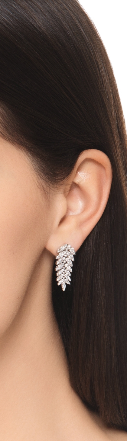 Boucles d'Oreilles Design Pendantes Diamants Or Blanc