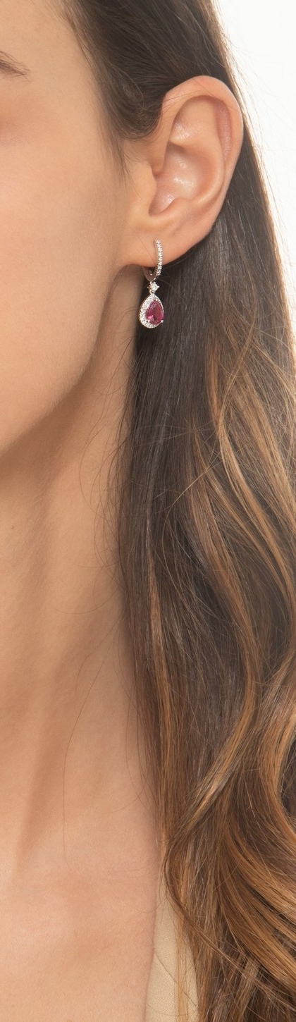 Boucles d’oreilles en or 18k avec goutte en rubis et diamants