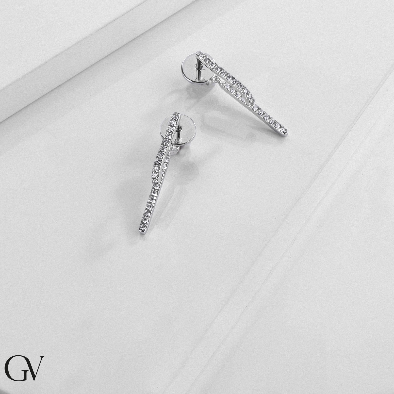 Boucles d’oreilles en or 18k avec trois rangées de diamants en cascade