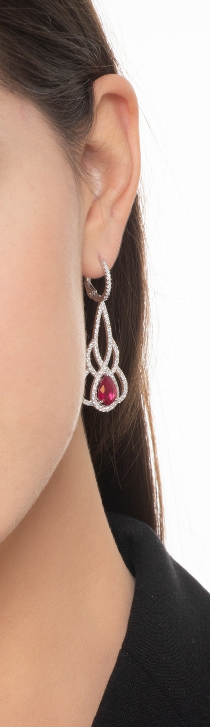 Boucles d oreilles en Or Blanc 18k avec Diamants et Rubis