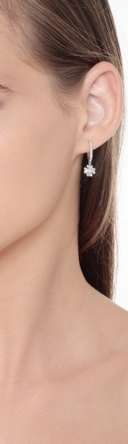 Boucles d’oreilles en or blanc 18k avec pendentifs trefle et diamants
