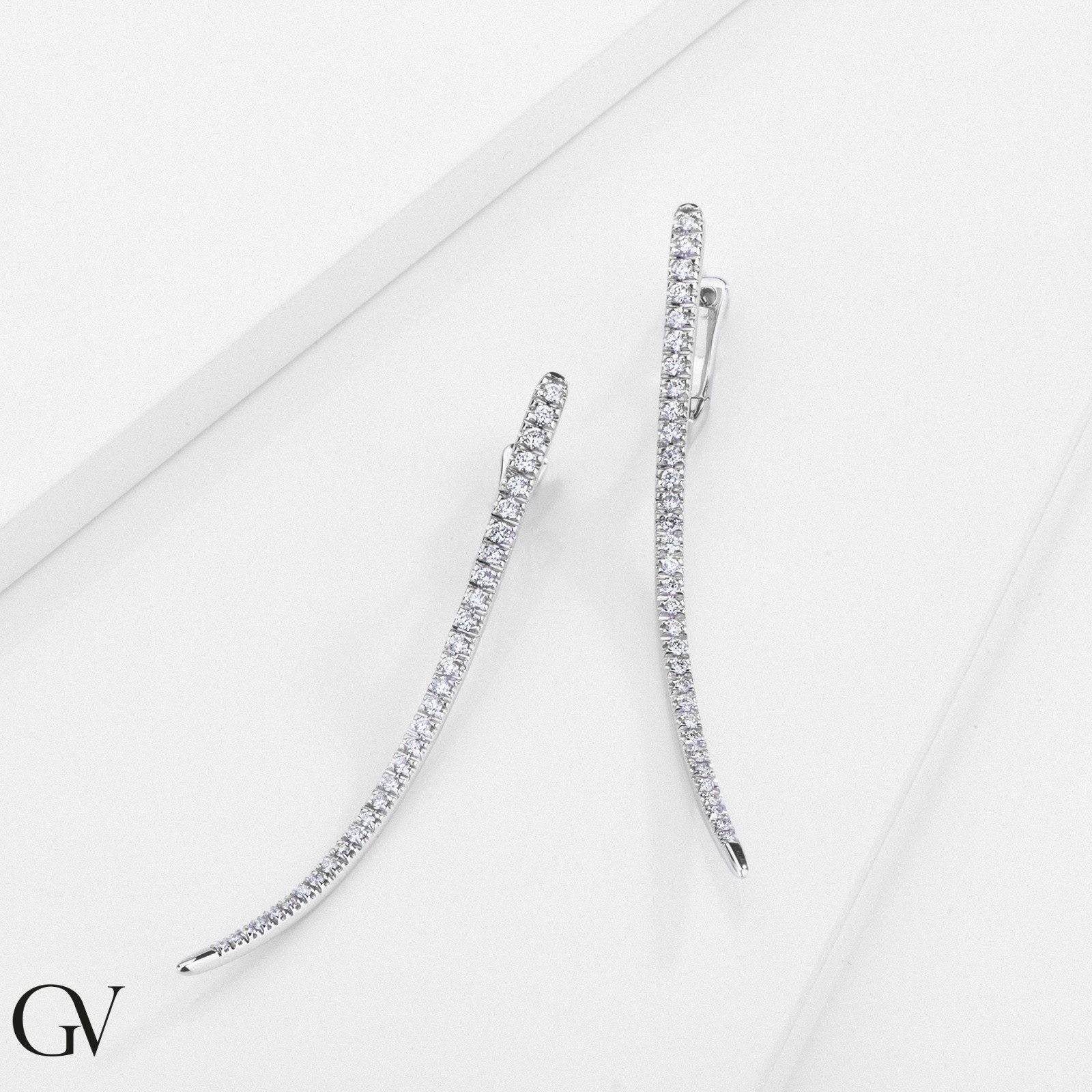 Boucles d’oreilles en or blanc 18k avec rangée de diamants