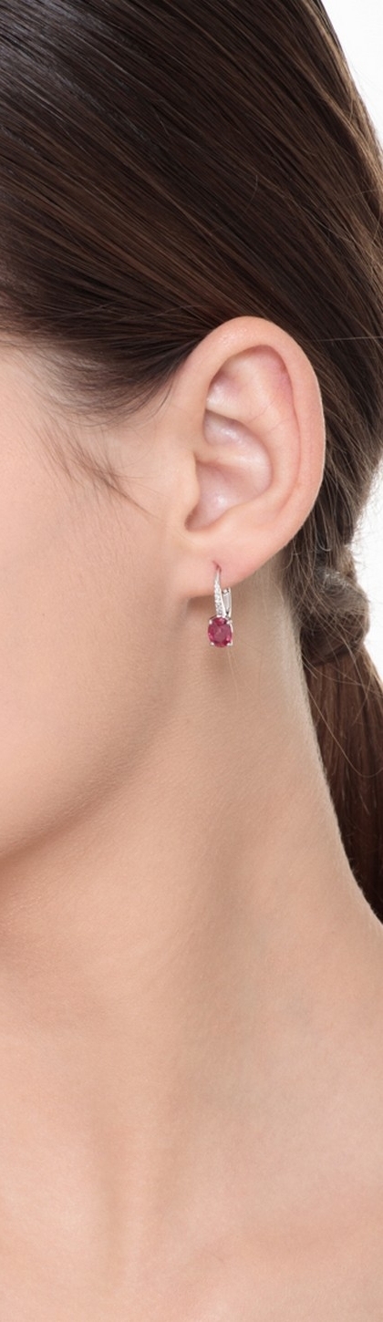 Boucles d’oreilles en or blanc 18k avec rubis ovale et diamants