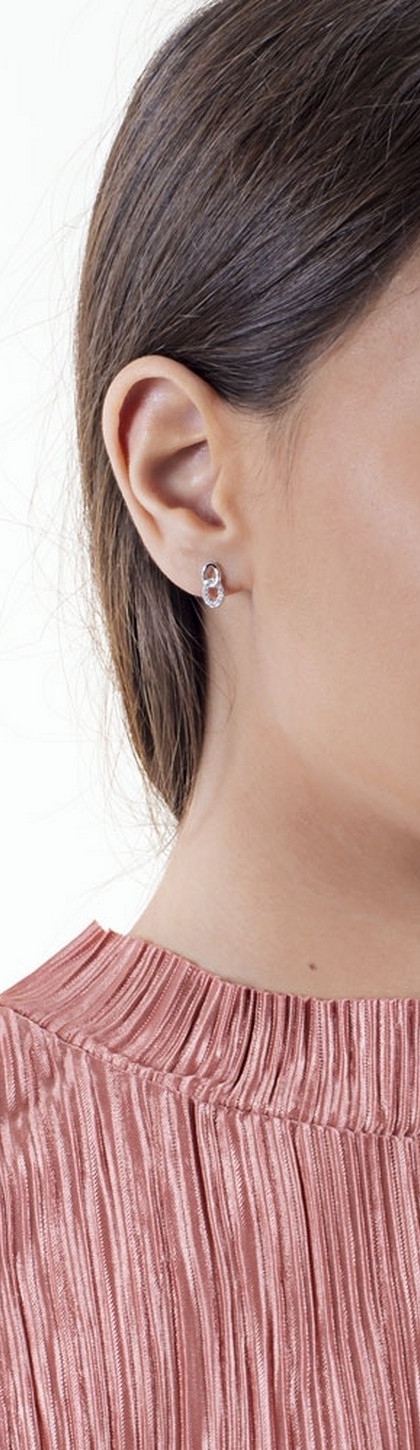 Boucles d’oreilles en or blanc 18k avec zircons style gourmette