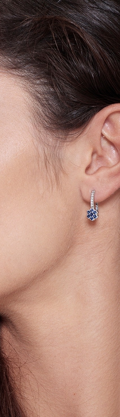 Boucles d'oreilles en or blanc 18k serties de saphirs bleus