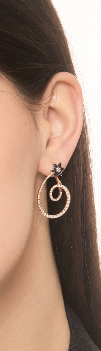 Boucles d'oreilles en or rose 18k avec fleur et saphirs bleus