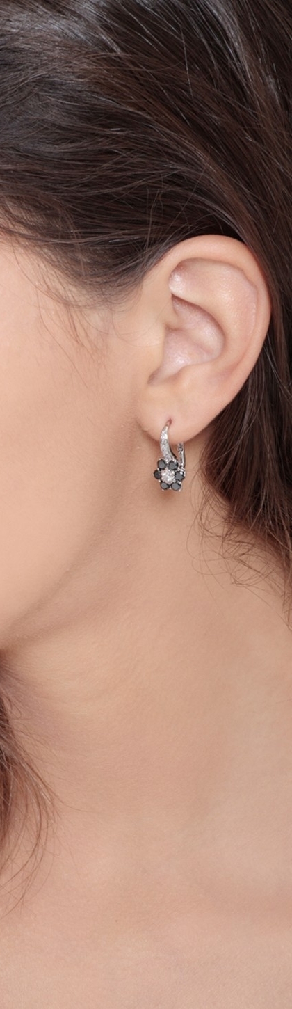 Boucles d oreilles fleur en or 18K avec diamants noirs et blancs