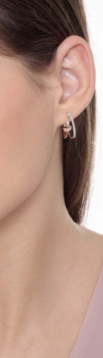 Boucles d’oreilles or blanc et rose 750 cœur avec diamants