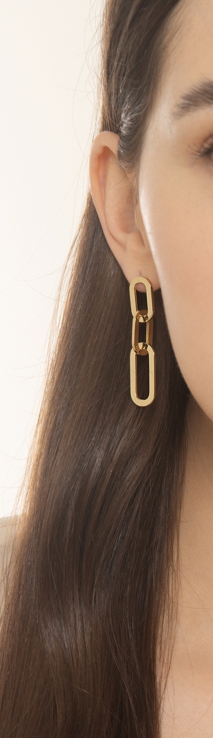 Boucles d'oreilles en or jaune 18 carats à fermoir mousqueton poli, 4 cm.