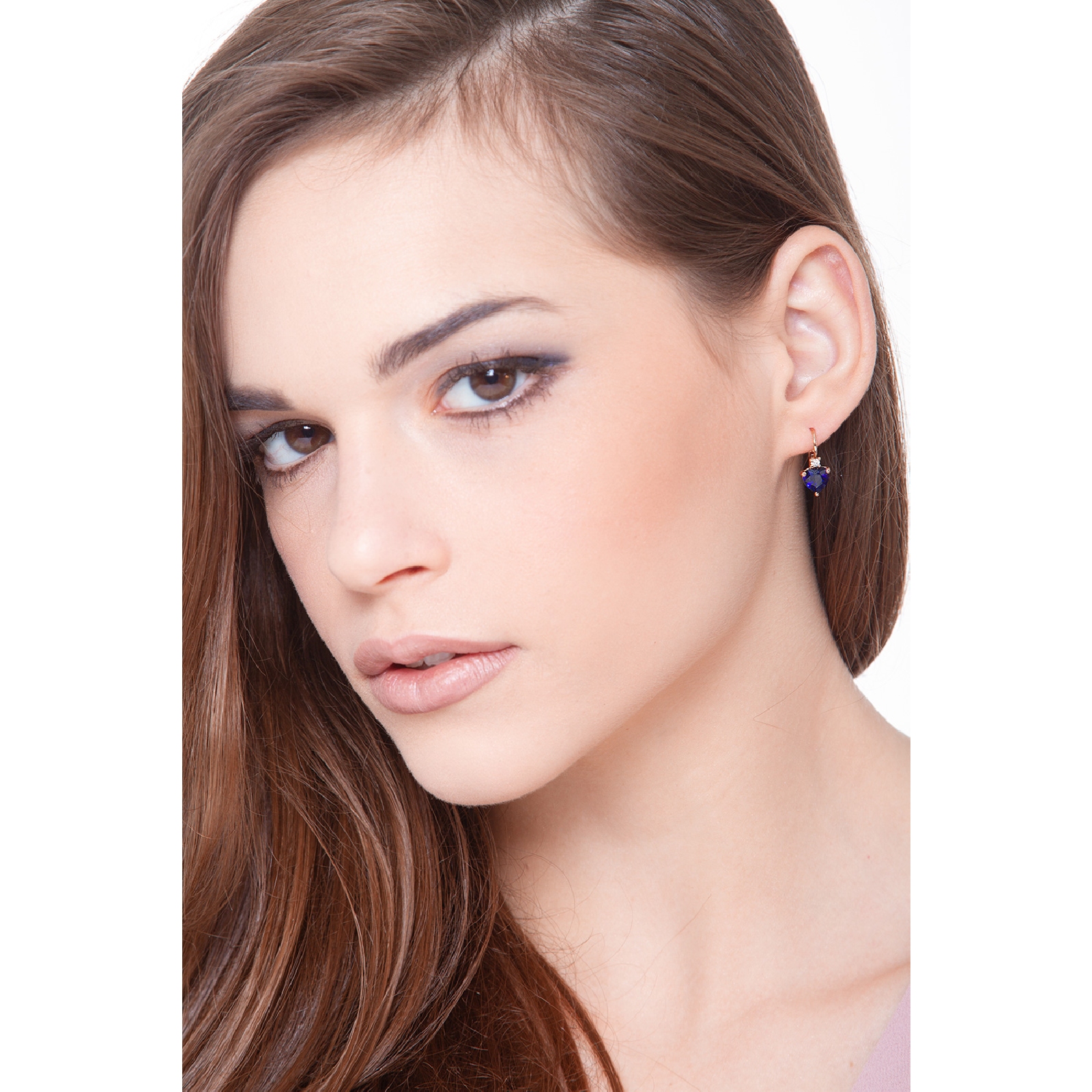 Boucles d’oreilles or rose 18k saphirs bleus cœur et diamants