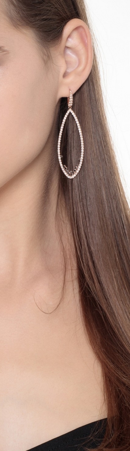 Boucles d'oreilles ovales en or rose 18k avec diamants et diamants noirs