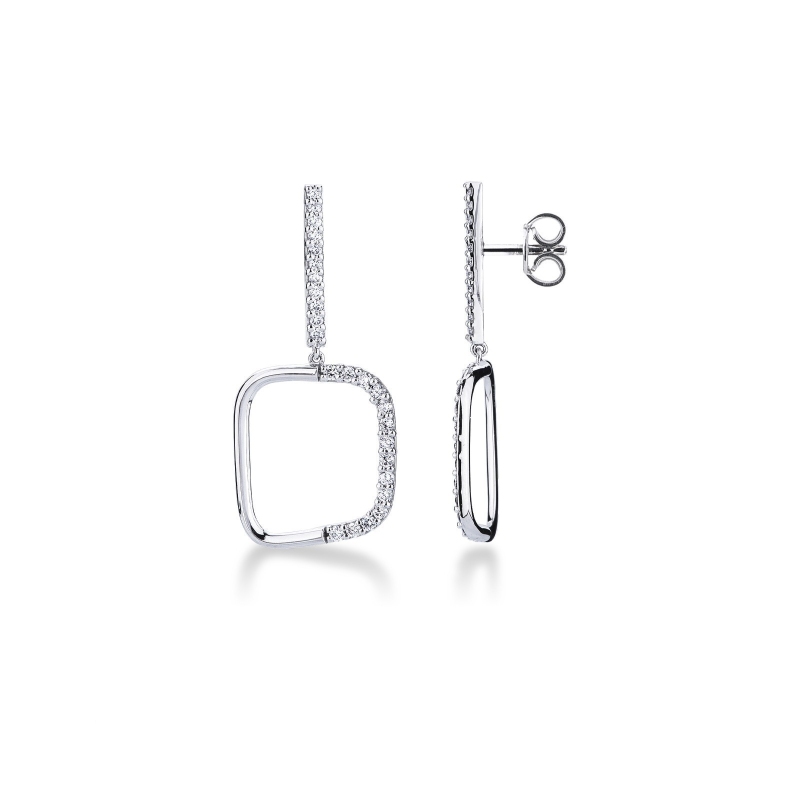 Boucles d’oreilles pendantes en or blanc 18k carré et diamants